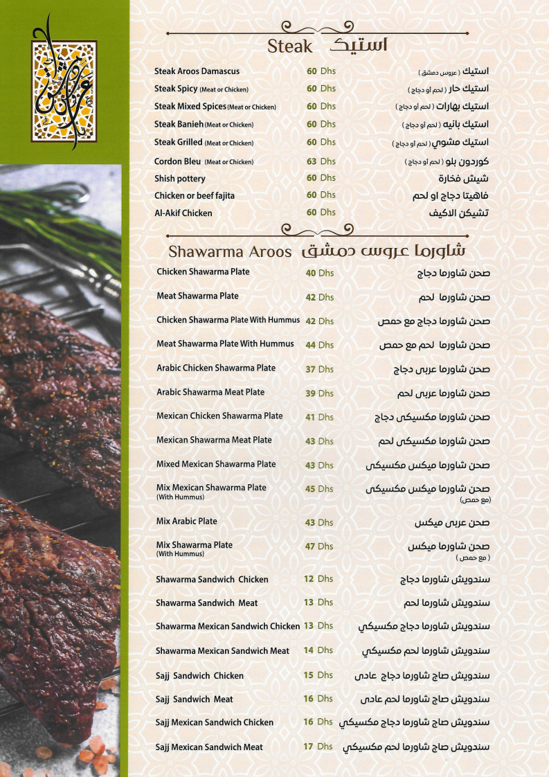 Welcome to Aroos Damascus Restaurant, a culinary haven nestled on Sheikh Zayed Road in Dubai, where authentic Syrian flavors come to life. Our menu is a delightful exploration of Middle Eastern cuisine, offering something for everyone.